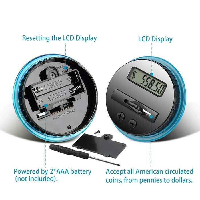 - Digitaal LCD-display houdt automatisch uw spaargeld bij. Elke muntenteller is voorzien van een digitaal LCD-display.